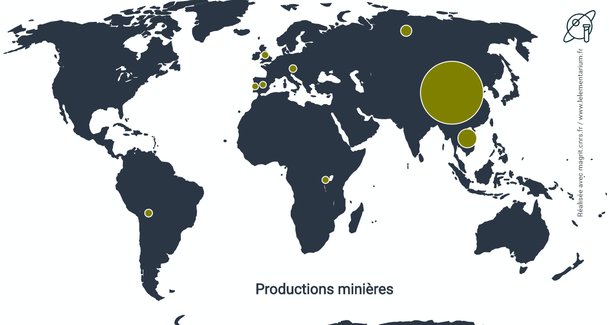 Productions minières principales de tungstène. Source: Elementarium.
